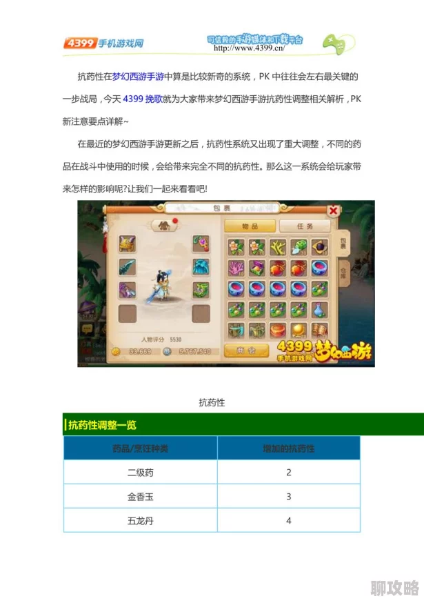 3、复活类药品特殊处理:复活类药品在战斗中具有特殊的作用,因此其抗药性也进行了单独的调整,复活类药品的抗药性点数被设定为8点,以确保其在战斗中的使用不会过于频繁或过于无效。